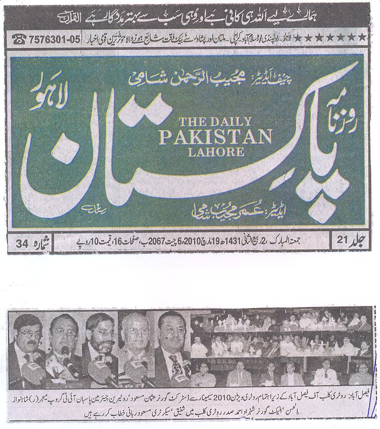 Rtn. Major Shahnawaz (R) donated a sum of rupees 108,000/= for treatment of poor patients at liver centre. Here the same cheque is being presented by District Governor Usman Masood Khan and Rtn. Major Retd. Shahnawaz-ul-Hassan to Dr. Zahid Hashmi.
