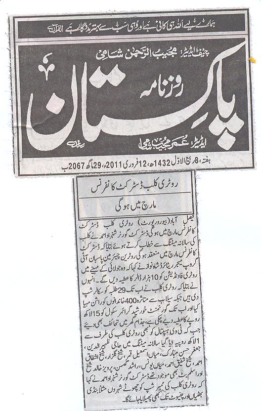 Rtn. Major Shahnawaz Chairman Pasban IT Group is greeting Rtn. DG Shahzad Ahmad at Intercity Meeting Faisalabad on February 6, 2011.